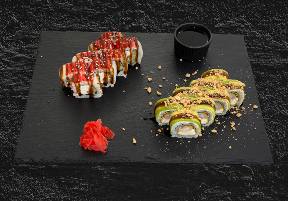 Compoziție: Avocado roll, Surimi roll. Masa: 600g.