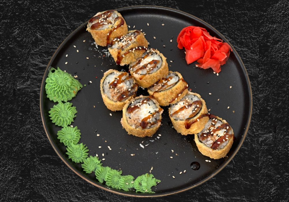 Sos unagi, Susan mix, Orez, Cașcaval, Masago, Somon free, Vasabi, Ghimbir, Soia. Masa: 300g.